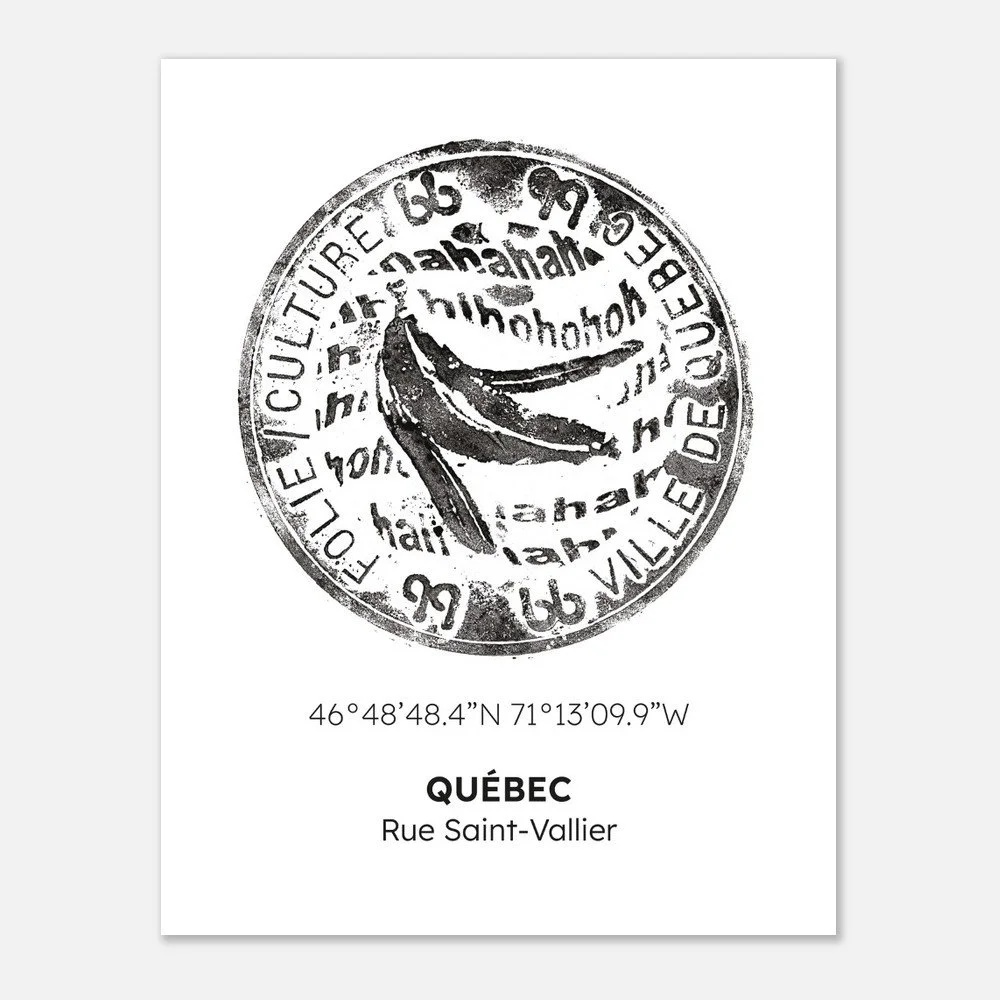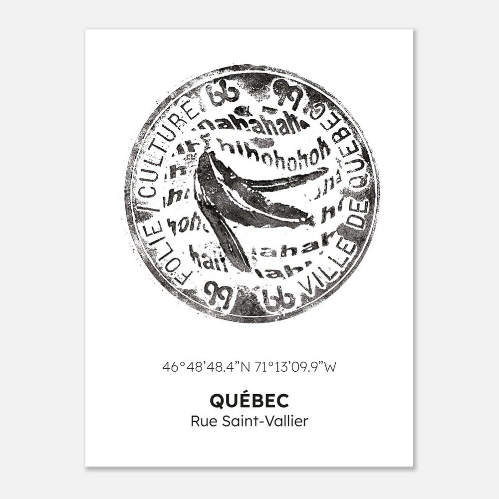 Capturée au sol, l’empreinte a été numérisée à partir d’un scan haute résolution, puis imprimée fidèlement afin de préserver les textures, les contrastes et le caractère brut du relief original. Cette impression numérique transforme un élément utilitaire du paysage urbain en œuvre d’art contemporain mural, à la fois graphique et porteuse de mémoire territoriale.